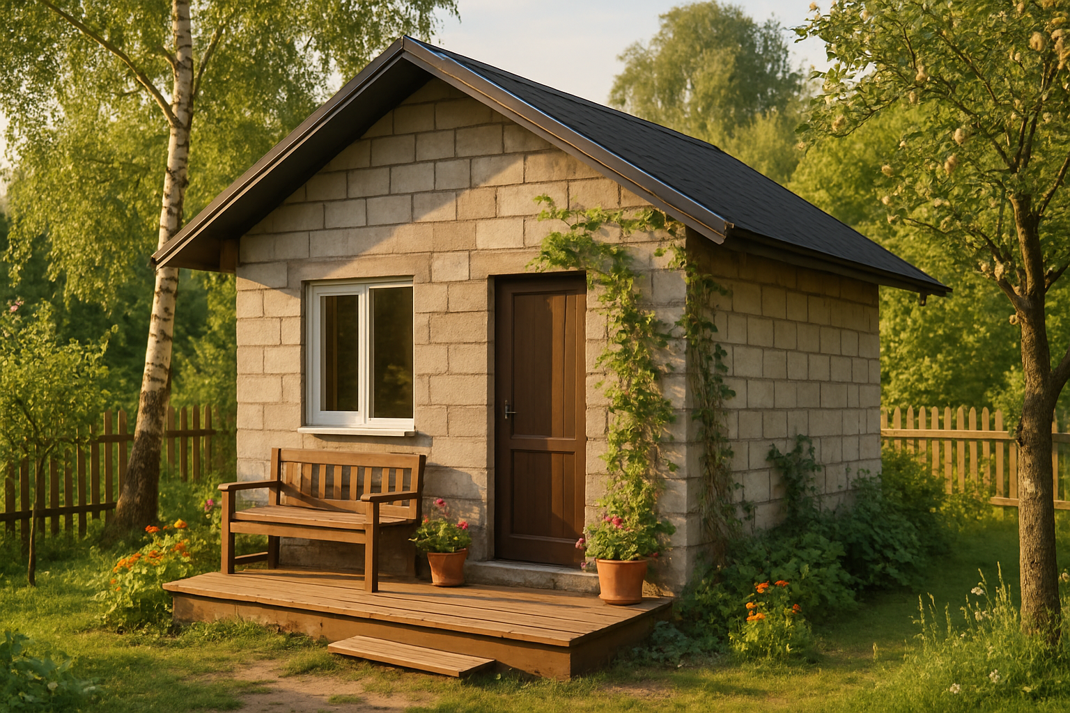 Дом 6×6 из газобетона — бюджетный вариант для дачи или гостевого дома. На такой объём обычно хватает одной машины с доставкой. Берите D500 — для одного этажа его прочности с запасом.